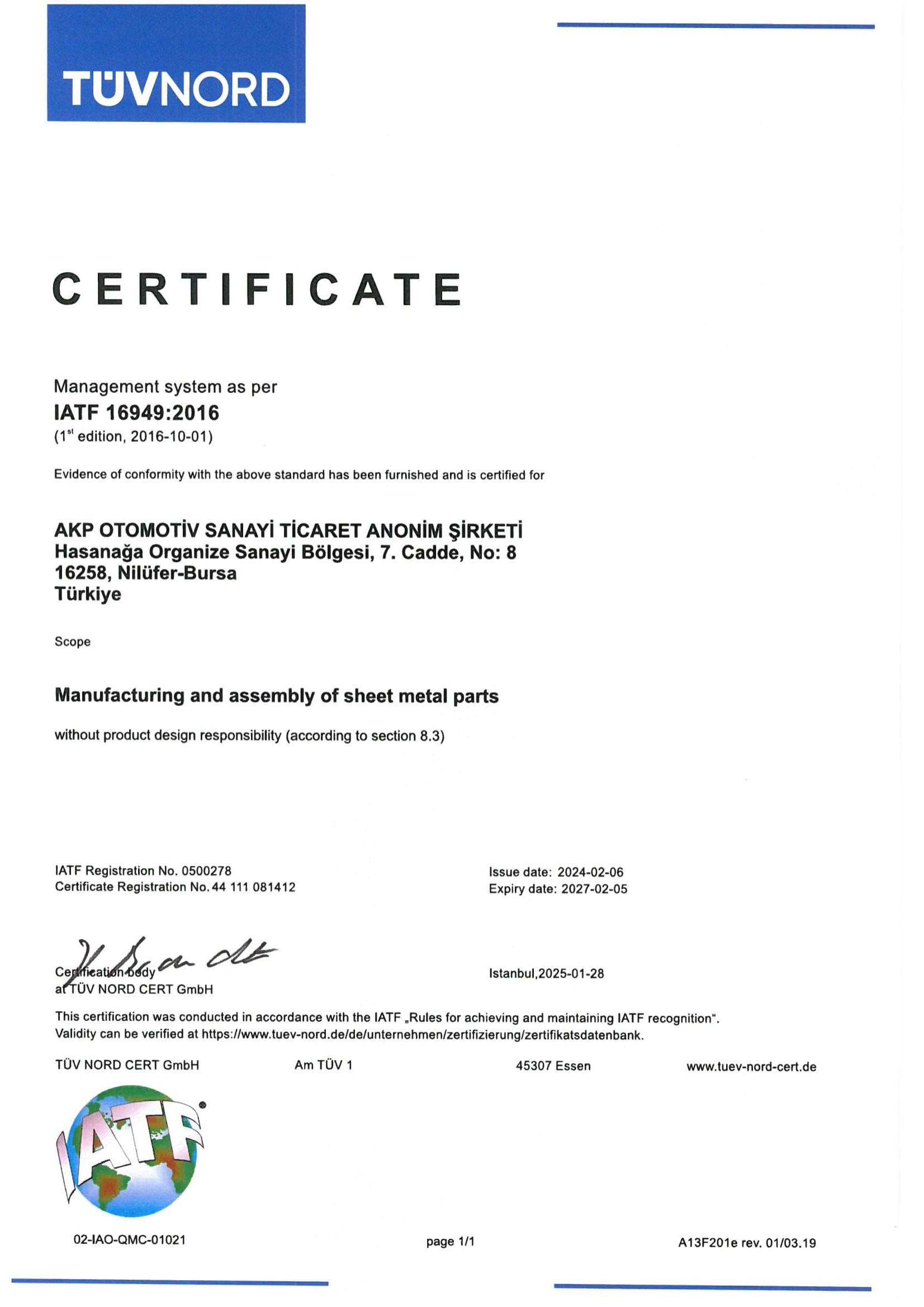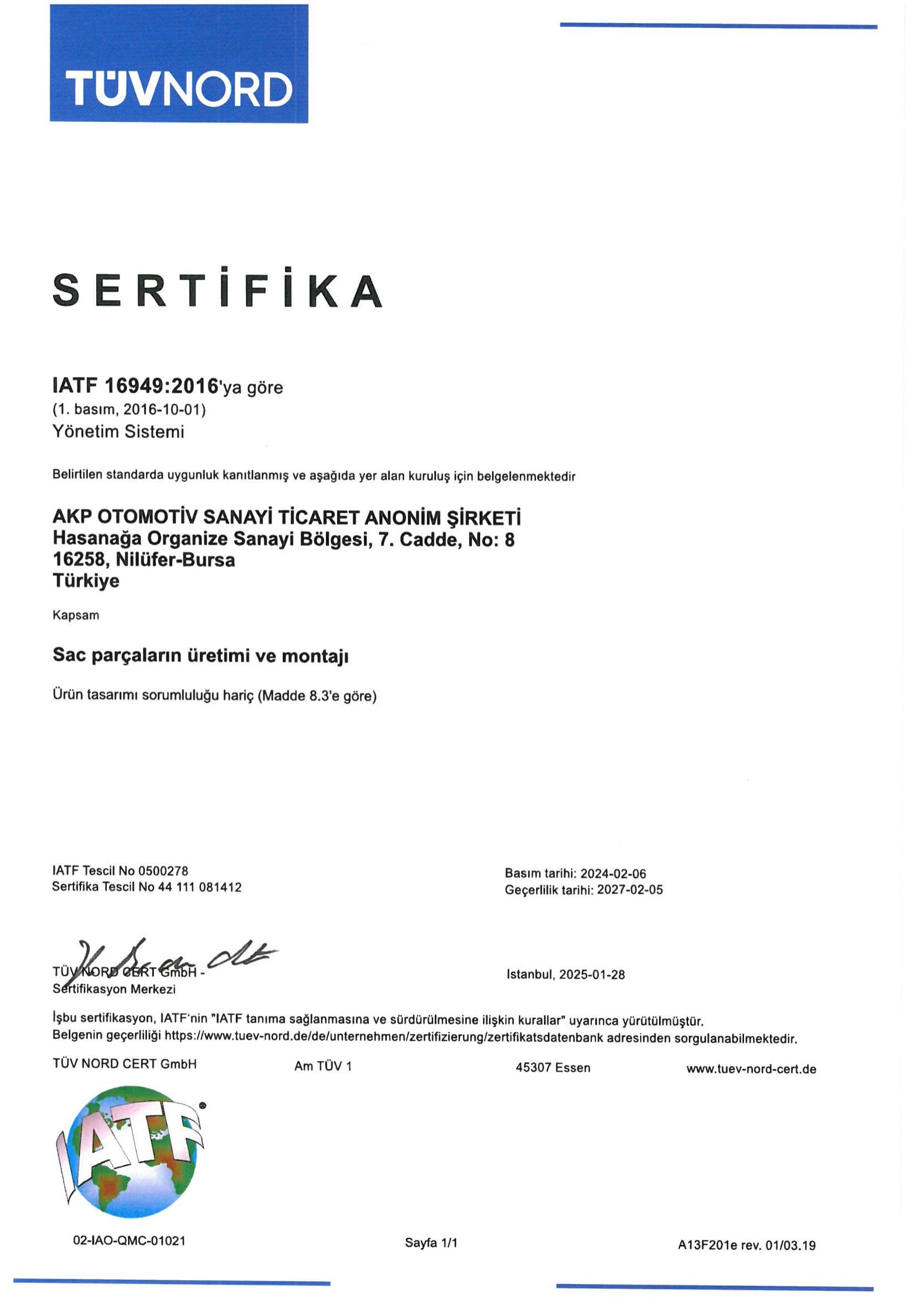Sertifikalarımız